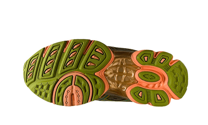 There Asics UB3-S Gel-Nimbus 9 Kiko Kostadinov Abbey Stone Displays a base in gray mesh, surmounted by leather panels gray and green, for the resistance. Distinctive sign of the brand, Tiger Stripes are present. For a practical side, a strap is on the tongue. In order to offer optimal comfort and absorb shocks, the pair is based on technology GEL integrated into a pink midsole.