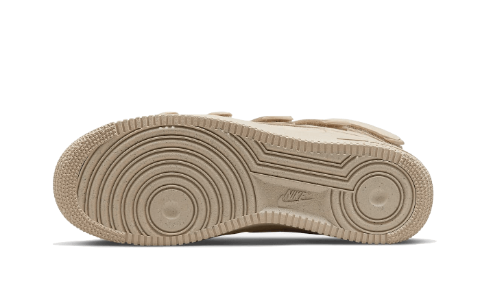 There Nike Air Force 1 High ’07 SP Billie Eilish reveals a upper in nubuck beige, made from recycled materials. Its originality is based on Five straps to Velcro which cover the laces and which are inspired by the Air Hang out. Its silhouette monochrome is sublimated by a tone sole on your Nike Grind.