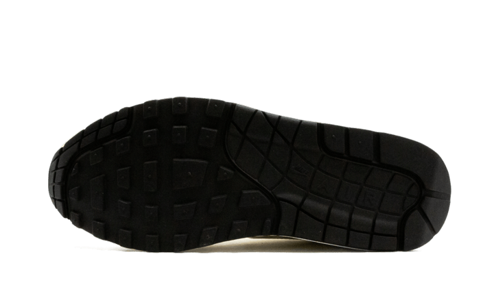 The Nike Air Max 1 Lemonade (2020) features a premium construction with an upper made of mesh and leather. The addition of satin panels on the heel and tongue adds a luxurious touch, while various shades of yellow create a nuanced monochromatic design. The repeated “AIR” logo across the upper brings a vintage detail, identical to the OG version. Finally, green laces provide a design reminiscent of lemon, a motif also found on the sockliner.