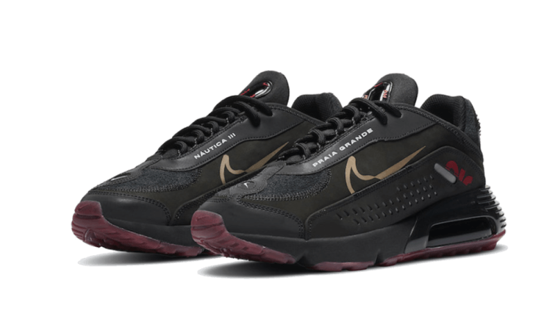 The Nike Air Max 2090 Neymar Jr. Black is made from a mix of nubuck and suede and features a black upper. Details referencing Neymar’s childhood can be found, such as his adoptive home or his training center. The golden Swoosh and translucent purple outsole provide the finishing touch.