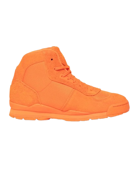 There Baltoro x Stüssy Safety Orange revisits a silhouette outdoor emblematic of the 80s. Designed as an urban hiking shoe, it is distinguished by its suede leather upper in a shade Safety Orange, combined with tone-on-tone reinforcements. Its cushioning midsole and lugged outsole provide durability, support and optimal grip on different terrains. Signature details from both brands are visible on the tongue and heel of the sneakers.