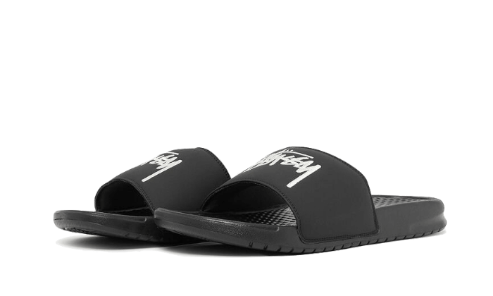 The Nike Benassi Stussy Black goes for black and features a cream embroidered Stussy branding, spanning the entire width of the support strap. The rigid semi foam sole adds a touch of comfort.