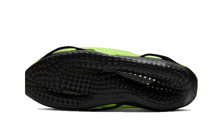 There Nike MMW 5 Slide Volt presents an unprecedented structure with a upper in Electric green EVA foam A futuristic aesthetic. A series of perforations Orne the entire silhouette and allow effective breathability to keep the foot fresh and dry. The whole set is based on a Double foam sole to which There is a stability plate.