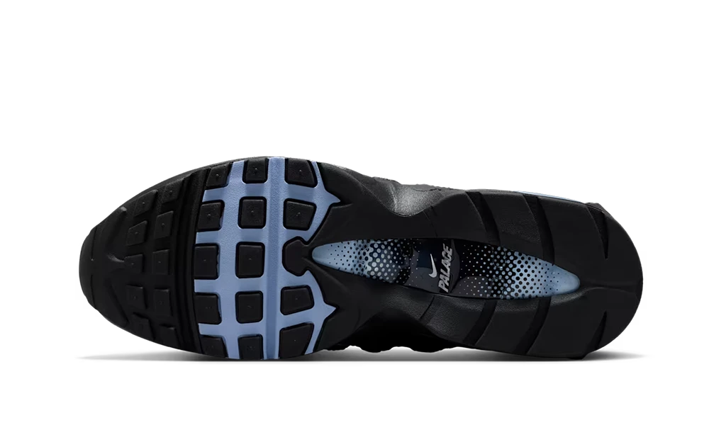 The upper is adorned with a Metallic color Silver Black combining metallic silver panels with black elements, creating a futuristic and impactful contrast true to Palace’s bold aesthetic. Co-branding details — Palace’s Tri-Ferg and Swoosh Nike — sign this collector’s pair with the irreverent touch specific to the London label. The technical construction inherited from the Air Max 95 guarantees proven comfort for daily wear. A sneaker aimed at fans of exclusive collaborations at the crossroads of skateboarding, streetwear and culture sneakers.