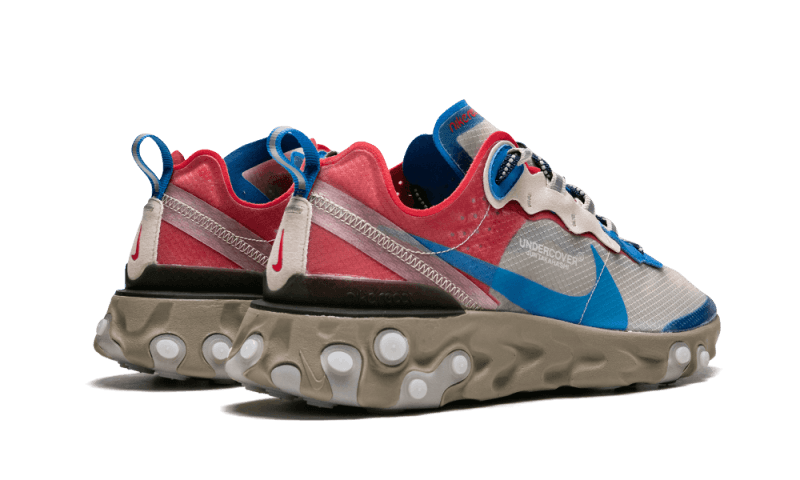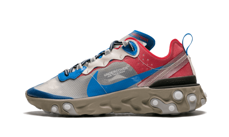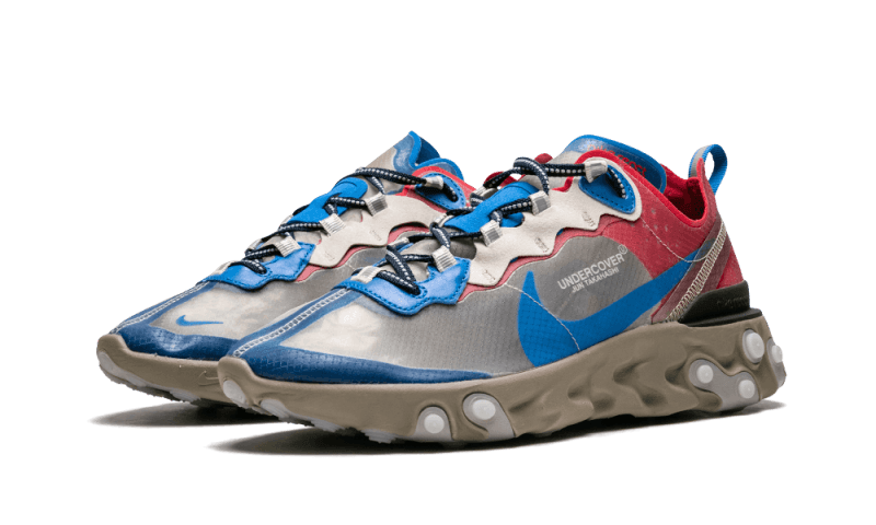 It stands out with its translucent upper beige in dark, red, and blue, all set atop a brown sole ensuring optimal comfort. The cherry on top, the Nike React Element 87 Undercover Light Beige is embellished with a reflective 3M strip on the outside of the foot!
