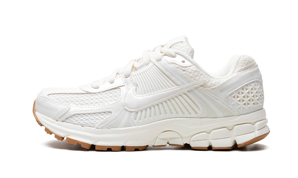 There Nike Zoom Vomero 5 White Gum presents a white mesh base, accompanied by leather superimpositions, tone on tone and details beige At the rear swoosh. Its natural gum outsole ensures optimal maintenance and comfort, ideal for welcoming spring with style.